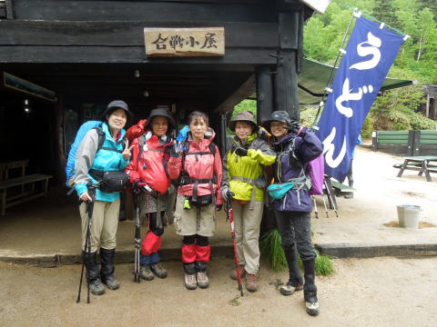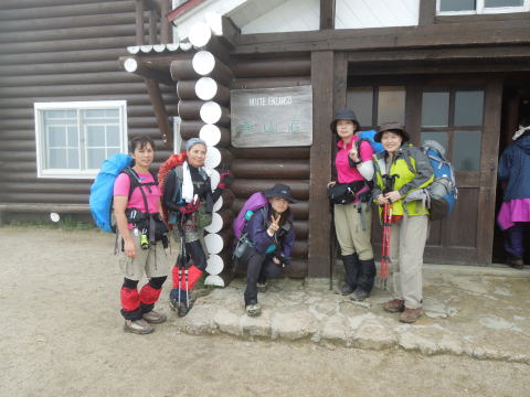 燕山荘(標高2680m)に到着です。ここまで約1200m標高を上げてきました。道中誰もが大変苦しい時間ではありましたが、達成感という素晴らしい感覚を味わい、すがすがしい顔です。自己ベストのメンバーは、それぞれ自分の限界枠を広げる挑戦を体験しました。北アルプスの雄大な景色を見て、この感動をさらなるものにするはずでしたが、残念ながらすっかりガスに覆われていて山陰ひとつ見えません。明日の天気に期待します。