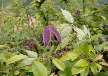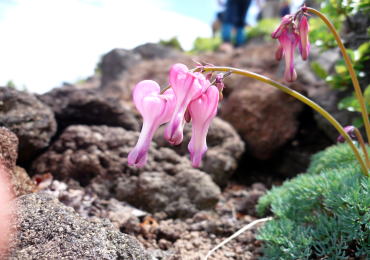 早速、岩場の陰に高山植物の女王、コマクサが可憐に咲いています。ミヤマハンショウヅルも沢山咲いていました。