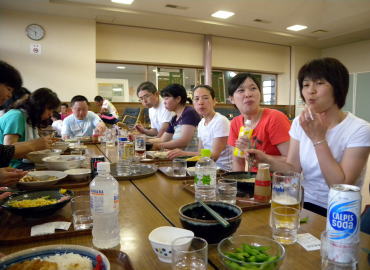 信州東御の湯楽里館でゆっくり汗を流し慰労会です。タミーは持病の腰痛とお付き合いしながらの参加でした。