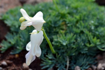 さ~て帰りは、シロコマクサ探しです。岩の陰にポツンと一株あります。純粋な白色で咲いたばかりみたいです。初めてお目にかかるシロコマクサに、夢中になって写真を撮ります。